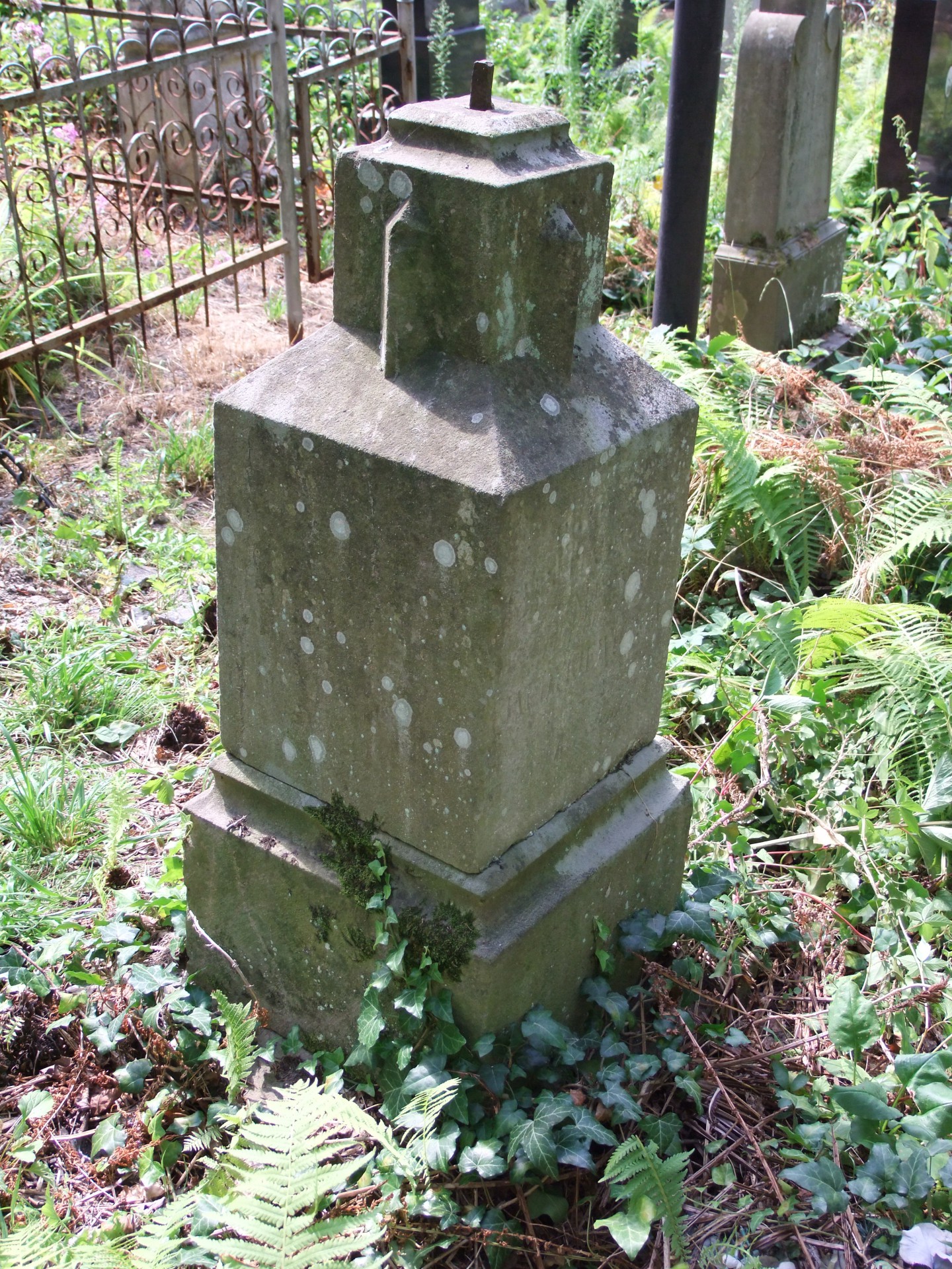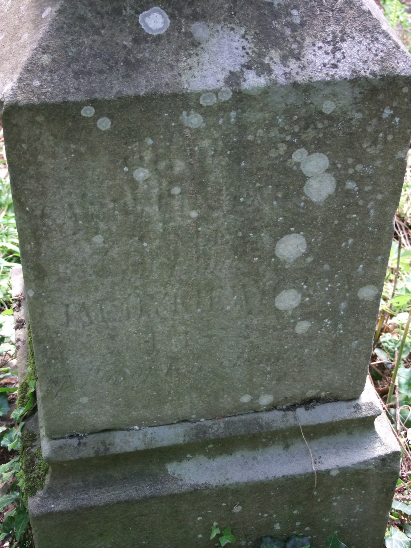 Надгробок в неоготичному стилі у вигляді постаменту, який був увінчаний хрестом. На фасаді постаменту викарбувана інскрипція.